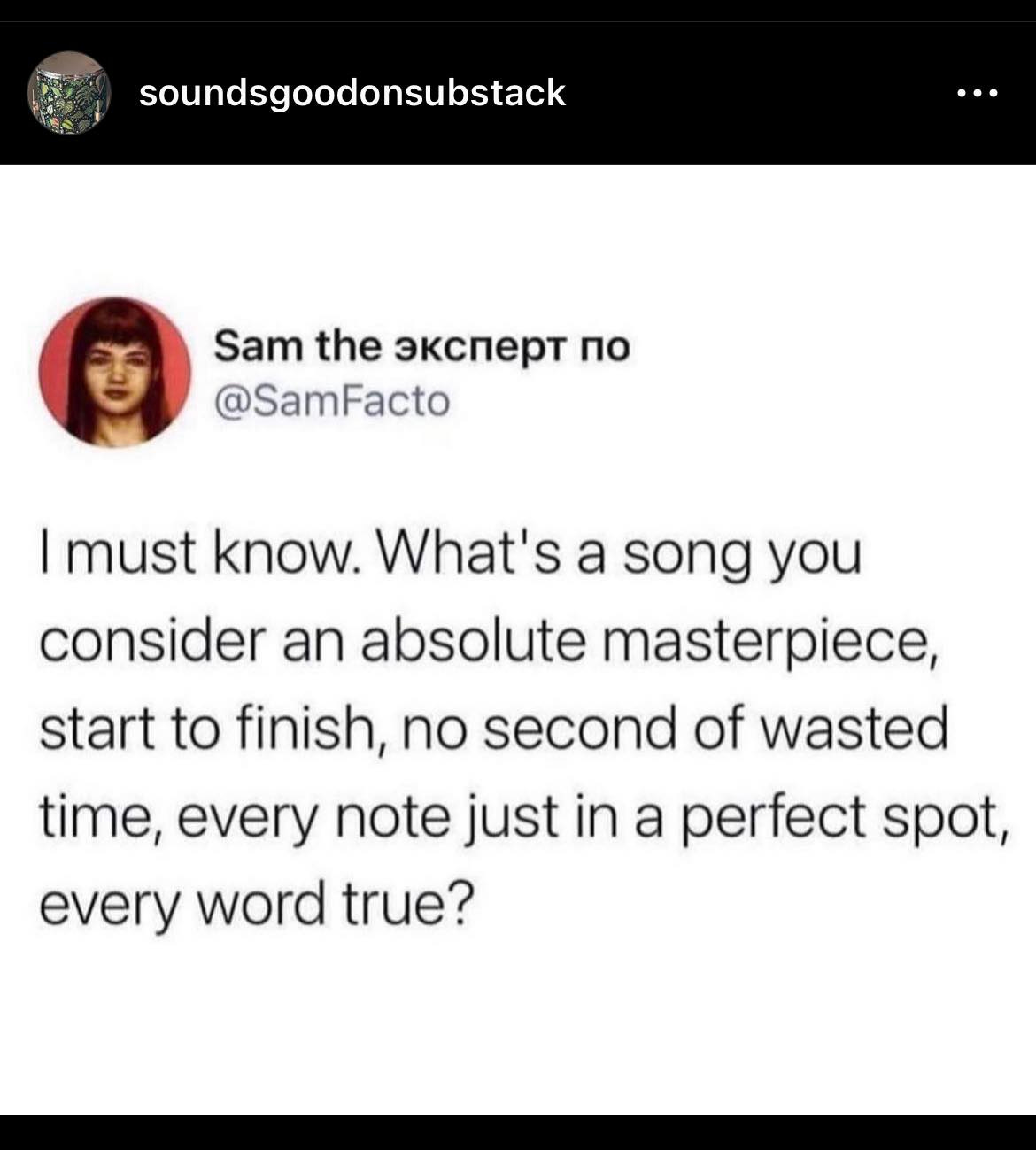 From time to time I like to make playlists. I made this one with your help. You see I shared that meme/question above on Instagram. And the comments started to arrive. So I thought I’d collect them up into a playlist. If more arrive, I’ll add to the playlist. But there’s enough to get going, enough for anyone to start listening. So, check it out. And If…