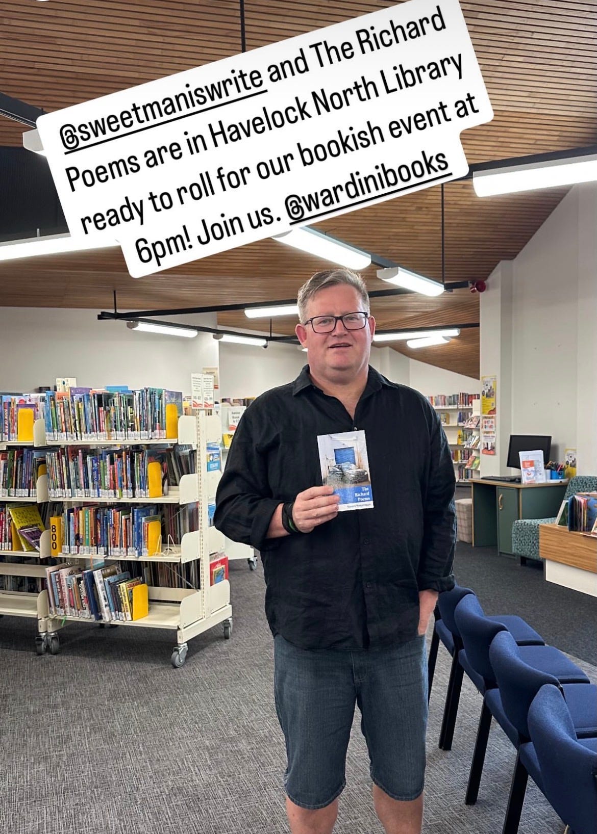 I chose to read a cover poem of Philip Larkin’s This Be The Verse, my own poem in response to that, The End of the Larkin Line (from my 2020 collection, The Death of Music Journalism). And then two pieces from 2024’s The Richard Poems, including Girls And Boys at the Havelock North Swimming Pools — as featured in Best NZ Poems: