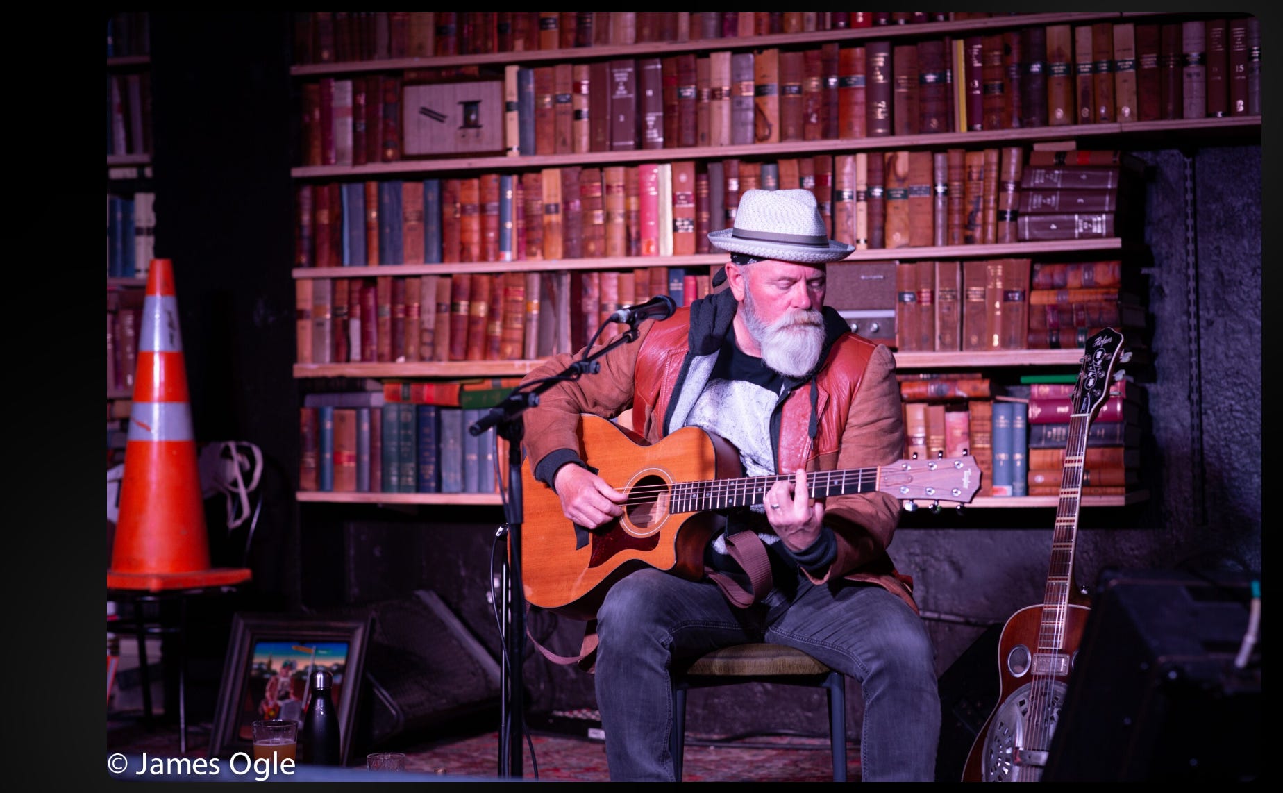 The launch was to be a party — and so Mike Blue opened with music (and a poem):