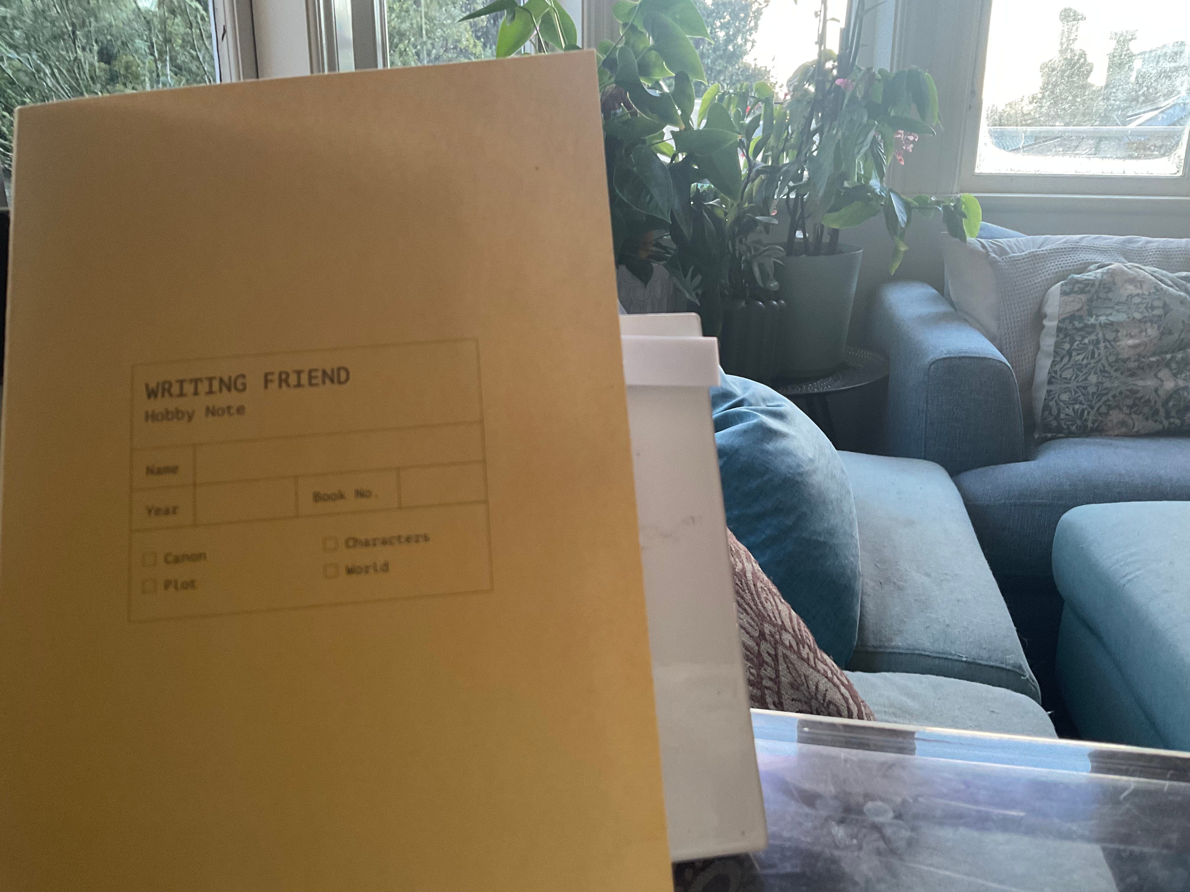I have a journal on my desk now. It says “Writing Friend”.